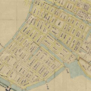 19世紀の小舟町付近の上水樋線(「神田上水樋筋絵図」東京都水道歴史館所蔵)